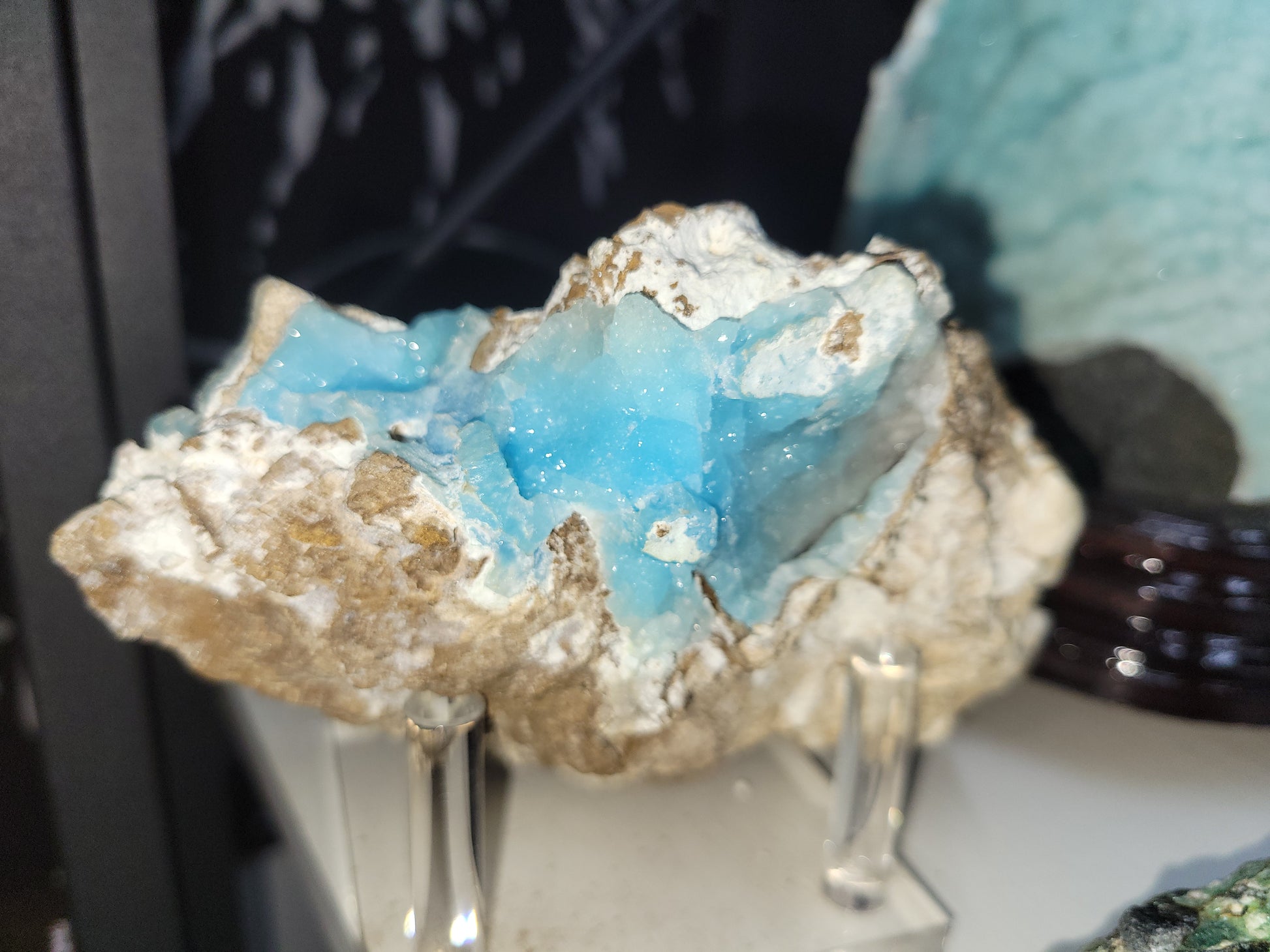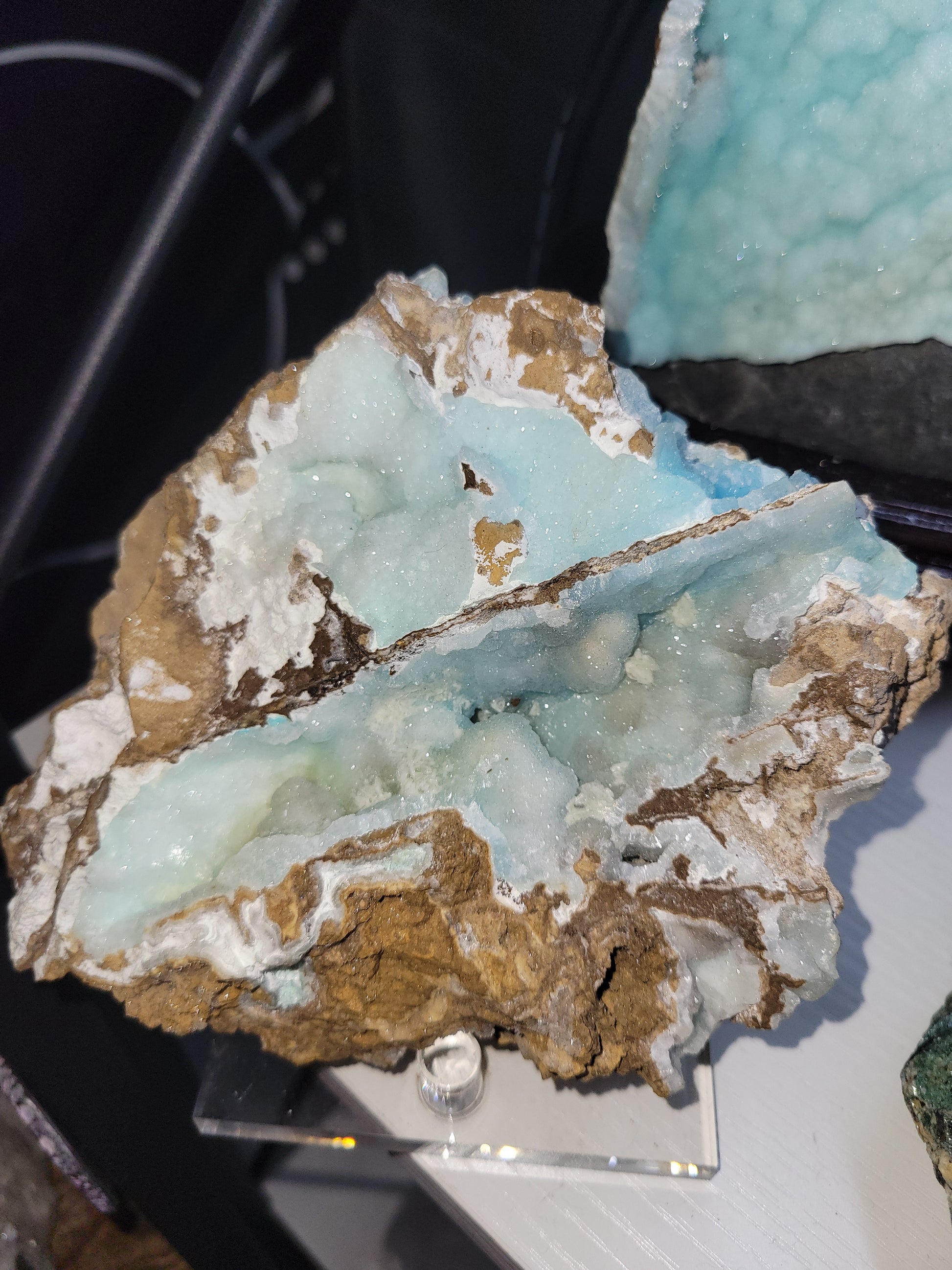 Hermaphrodite blue druzy specimen , Acrylic Stand included